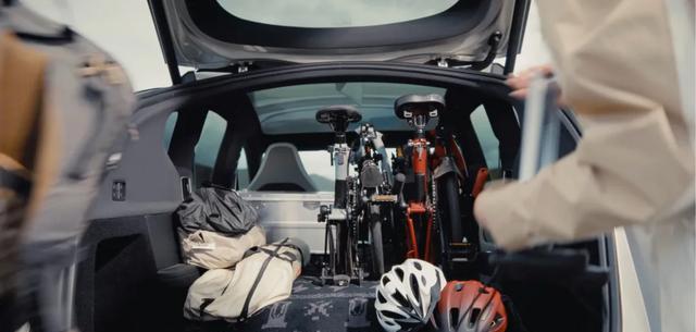 如果放倒第三排座椅,特斯拉Model Y L可以放下 4 个 28 英寸和 2 个 20 英寸的行李箱,而且滑雪板、自行车,都轻松收纳,不在话下。